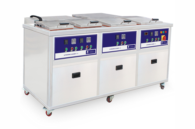 四槽冷凝防爆超聲波清洗機(jī)可使用如三氯乙烯、三氯乙烷等或其他性質(zhì)相似的清洗劑等作為清洗介質(zhì)。