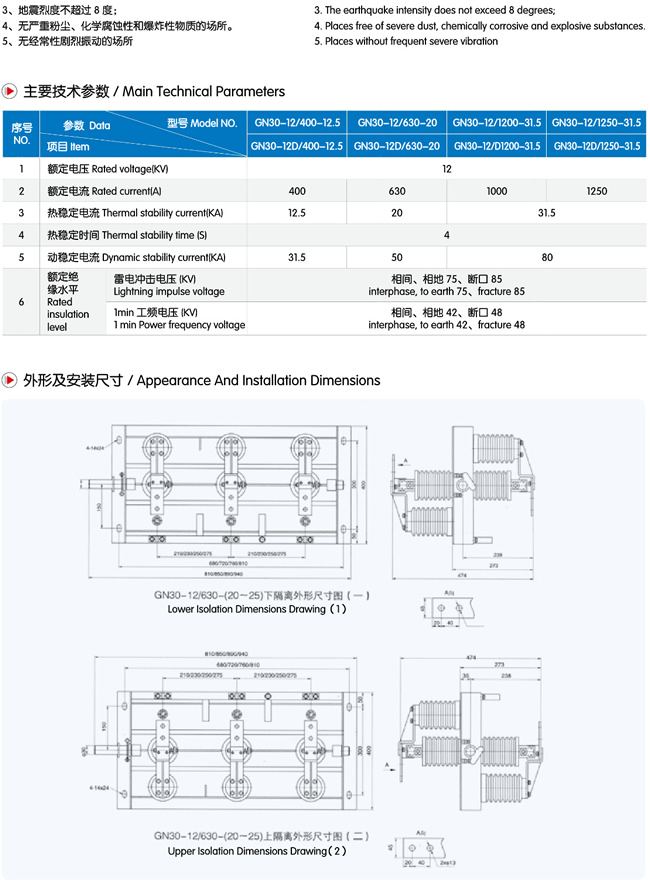 GN30-12戶內(nèi)旋轉(zhuǎn)式高壓隔離開關(guān)