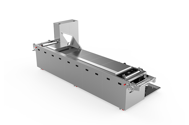 金屬薄板卷料超聲波清洗機通過收/放卷料設備自動上下料,以一定的速度通過超聲波清洗、噴淋清洗、切水、熱風干燥等工藝進行清洗和干燥,最后達到高潔凈度的清洗要求。